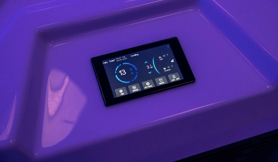 Il Modello Pro è dotata di controlli abilitati al WiFi, che ti permettono di impostare la temperatura a distanza. Il chiller della vasca Pro dispone anche della modalità di riscaldamento, consentendoti di passare dall’acqua fredda a quella calda, con impostazioni da 3° a 40°C.